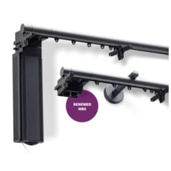 De functionaliteit van een gemotoriseerde rail wordt gecombineerd met de elegantie van een railroede. De roede heeft een diameter van 28 mm en is verkrijgbaar in de verschillende CRS kleuren, namelijk: inox, brons, antiek en goud. Daarnaast zijn de kleuren: zwart en alu-mat ook aan de range toegevoegd.