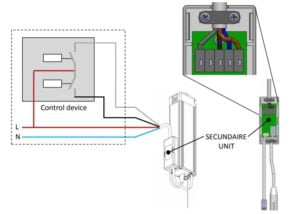 Bedien de Forest Shuttle met b.v. een rolluik module met 230V uitgangen (Met extra primaire unit voor 3 aders naar de motor i.p.v. 4)